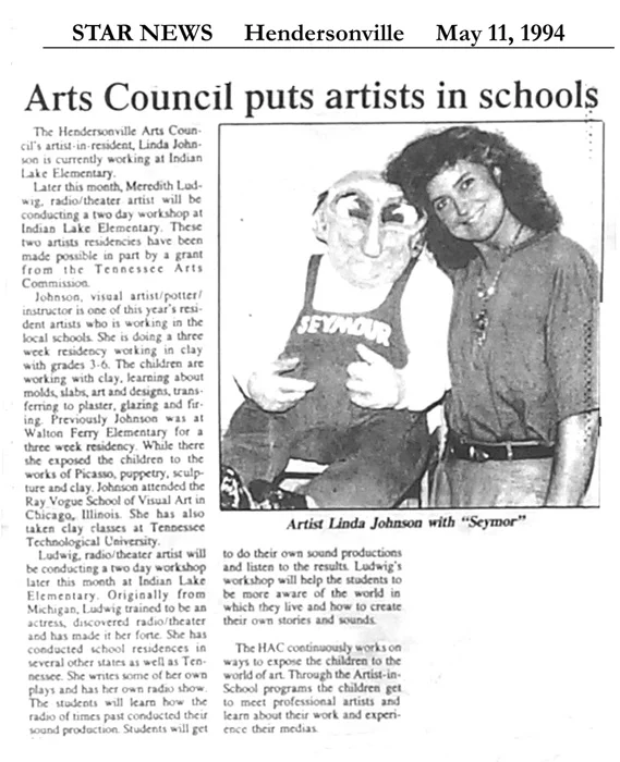 Ms Johnson studied commercial art at the Illinois Institute of Art (Ray Vogue), in Chicago IL; graphic design at West Shore Community College in Ludington MI; and clay at Tennessee Tech in Cookeville, TN. Formal education and training provided knowledge of tools and techniques, but Linda's vivid imagination is the heartbeat of her work.